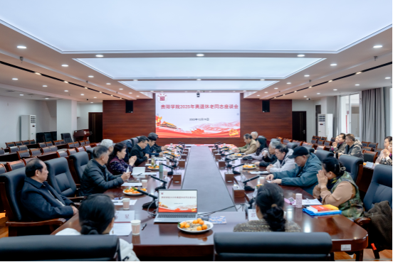 2025年12月19日,贵阳学院2025年离退休老同志座谈会在九思楼八楼会议室举行。校党委书记黄营,党委副书记马力与离休老同志、退休厅级领导、校关工委负责人、各离退休党支部书记及委员等欢聚一堂,共叙情谊,共商学校发展。座谈会由马力主持。